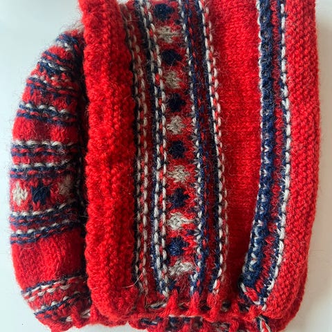 Gammel strikket lue og heklede sokker fra 50-/60-tallet.