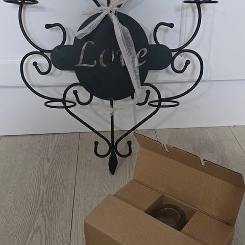 Særdeles nydelig telysestake til 6 telys. Med hjerter. Veldig lite brukt,nesten som ny.Dessverre nå har jeg ikke plass til denne lysestake.Flotte detaljer,se bildene 👈 Kan brukes hele året! Høyde 47 cm og diameter på 25 cm.