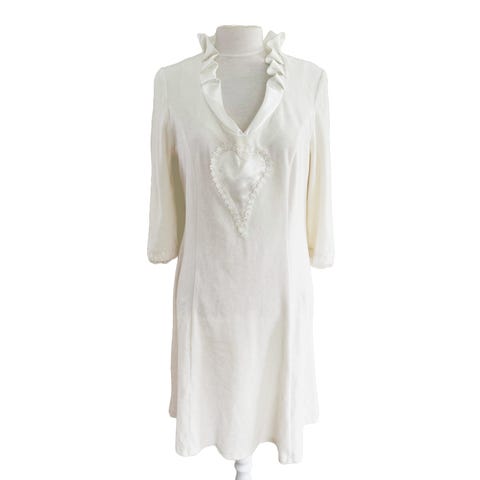 Fint hvit kjole med blomster mønstre i bomull. Som en ny. Størrelse L-40