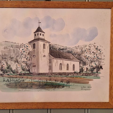 Gamle våler i solør kirke Jean louis adorsen digital akvarell fra foto. 45*45 cm