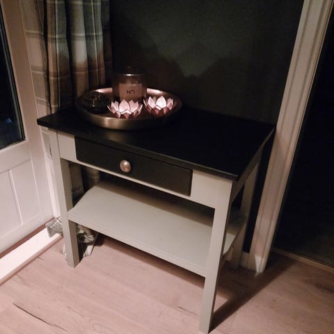 Selger en liten kommode/ sidebord / lampebord i beiset eik.