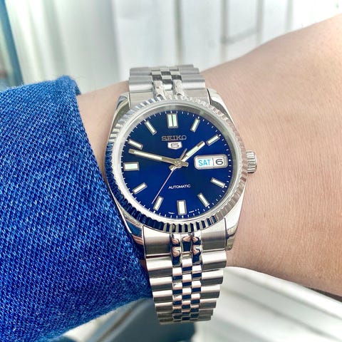 Kommer på en mørkegrønn nato reim. Sort gummi reim medfølger også.