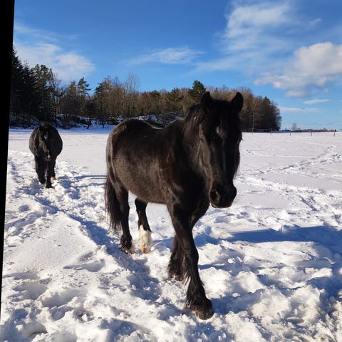 Hingstene slippes hovedsaklig på beite med hopper. De er godt sosialisert og er meget snille med både hopper og føll. Er det hopper som trenger tilleggsforing eller lignende, ordner vi selvfølgelig det mot ett tillegg i prisen eller ved at du har med tilleggsfor selv.