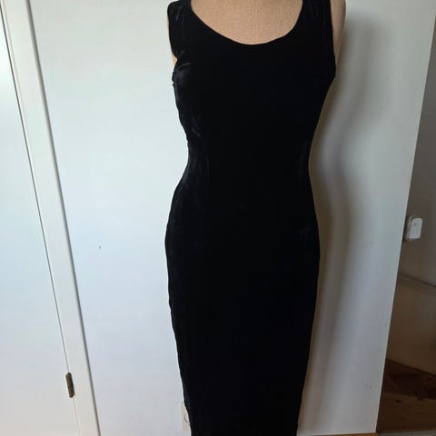 Stoffet ser ut som fløyel, men er bomull! Veldig kledelig fasong på toppen, som lukkes med mange hekter