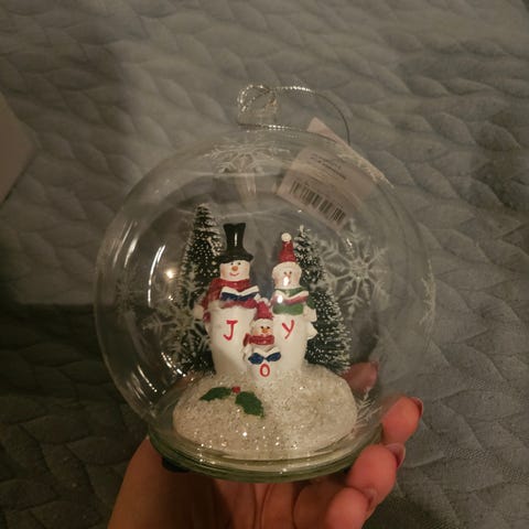 Snøkulen/julekulen har har lys som kan skrus av og på, og har et koselig julemotiv. God som ny.