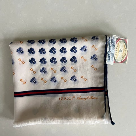 Sjeldent lekkert Gucci sjal i 50% kasjmir og 50% ull. 274 cm. X 238 cm. Florlett. Aldri brukt. I perfekt stand.