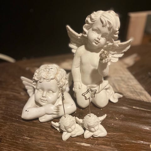 lys med engler. 17 cm høy.ubrukt