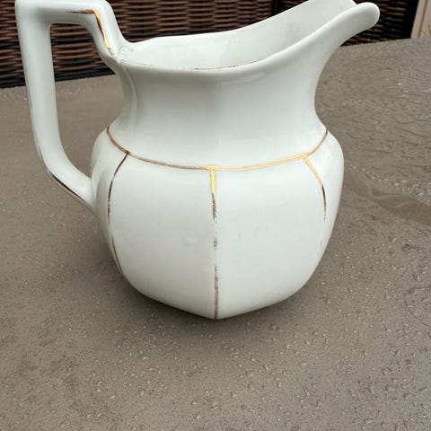 En helt grei vaskemugge fra Egersund, et lite skår på struten, men ikke så godt synlig.