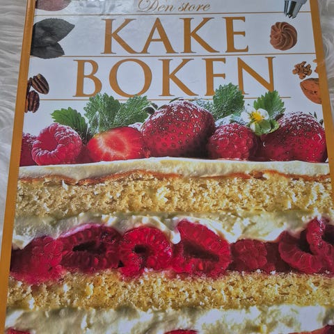 Selger forskjellige bake og koke bøker og noen former til pynt på kaker og en boks med samler kort