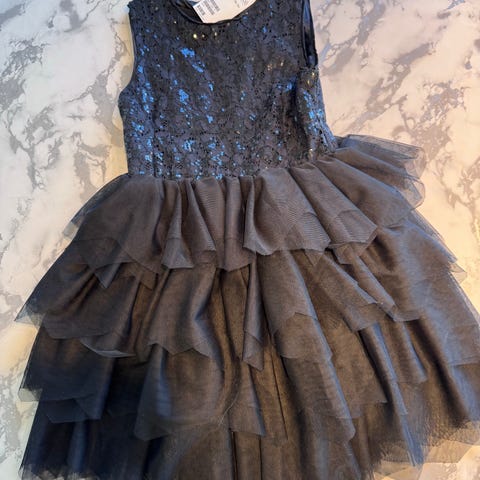Nydelig tyllkjole fra Memin i en dus blå/grå farge. Glidelås i ryggen.