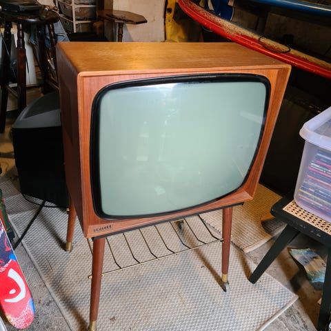 Vintage Tandberg sort/hvit TV i flott stand med palisander treverk. Kanskje en antikvitet om noen år. Jeg tror TV'en fortsatt fungerer