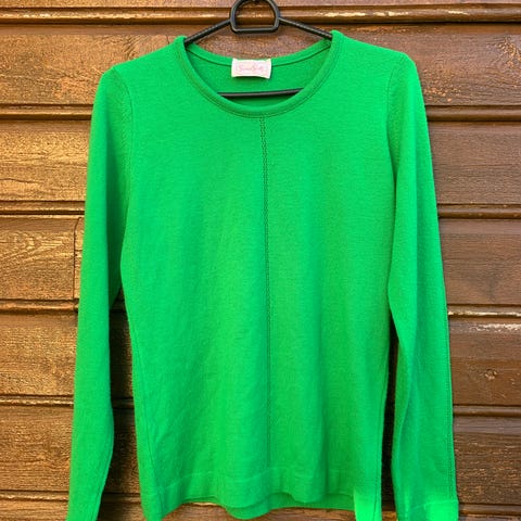 Nyvasket, men fikk ikke bort flekken, som har sittet der i mange år. Her kan man du på er merke eller brodere en sol f.eks.. Den er 64 cm i livet.