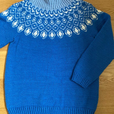 «Lillesand jumper» Ullgenser strikket i Drops Merino extra fine.