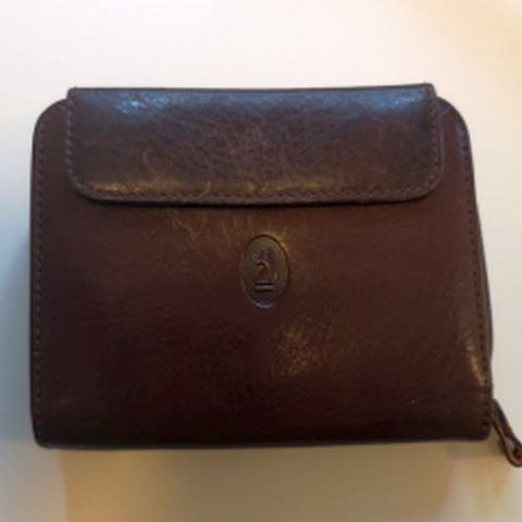 Skinn damelommebok merke Claudio Ferrici til salgs mot henting. Ekte skinn, utstyrt med to lommer til mynter, kortholdere, to store lommer til sedler og knapp (som lås). Lommeboken er