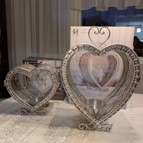 Håndlagde lysmansjetter av perler. Rosa, hvitt og sølv med rosa risperler.