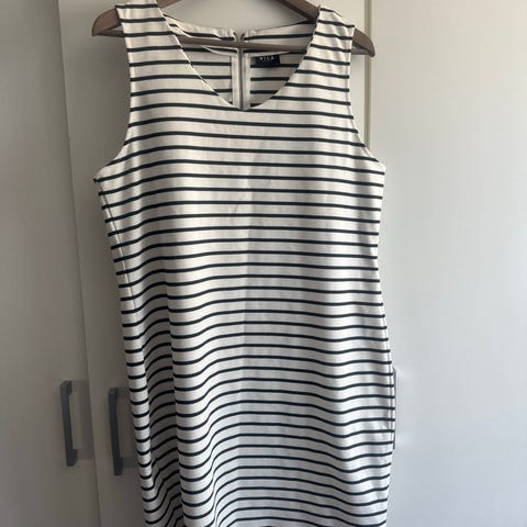Hvit og blå stripete kjole selges, er ubrukt, god strech , kan sende eller den hentes her , kjøpt for 599,-