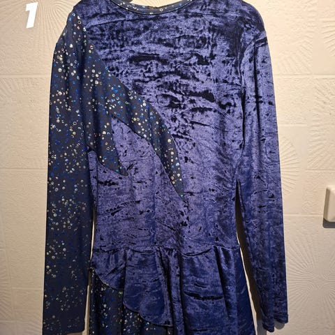 Super søt kunstløp kjole som bare er brukt på 2 stevner. Den ble kjøpt for 3000kr og følger med 2 scrunchier og en tights. Kjolen er i str xs