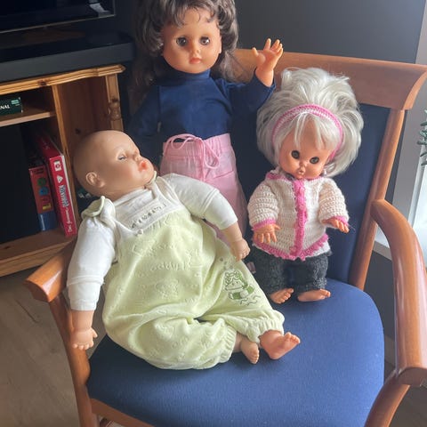 Alt av klær og dukkene er nyvasket.