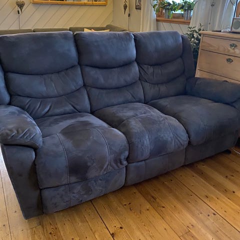 To pent brukte kinosofaer fra Ekornes til salgs (mørk blå)
