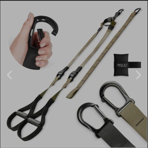 Slyngene er helt ny og aldri brukt. Følger med feste som kan brukes på stenger og i døråpningen samt forlenger. Den er i fargen gul og svart.