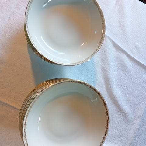 Kun potetbollen og sausenebbet igjen! Sort og gull Jarlsberg fra 50 årene fra Figgjo middags servise. Ønsker kr. 250,- for potetbollen og kr. 150,- for sausenebbet. Middagstallerkenene er solgt! Alle delene er i god stand. Jeg pakker gjerne og sender med Helthjem til kr. 70,- inkl. sporing og forsikring.