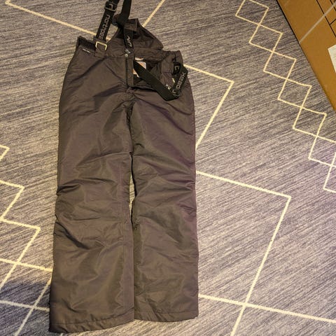 Lite brukt svart jakke med pelskant på hette og svart bukse. Tykke og varme ytterklær