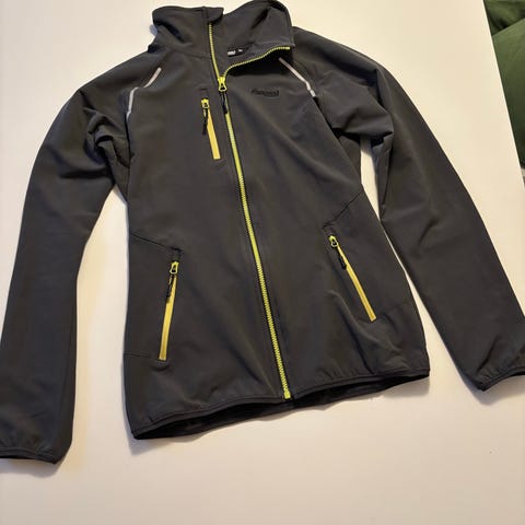 Pent brukt hel og fin svart trenings jakke med grønne detaljer.