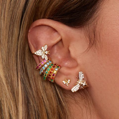 - Du får to par øredobber. Eugine Clear Huggies & Aurelia Bee Charm.