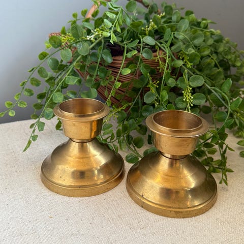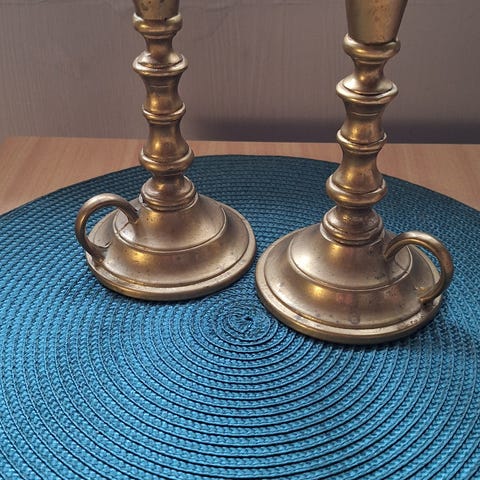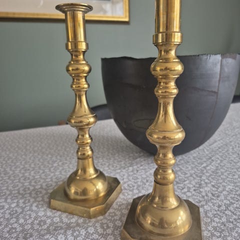 Nydelige retro lysestaker i messing (to solgt)