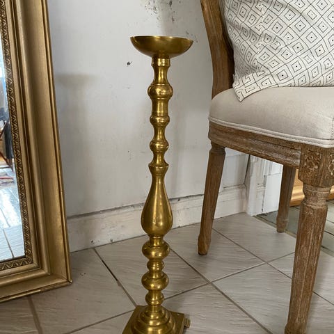 Høy retro lysestake i messing (kan brukes både som bord- eller gulvlysestake)
