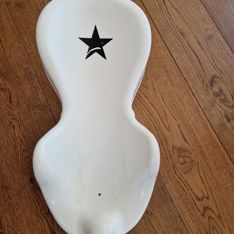 Badestol gis bort da den ikke er i bruk lengere.
