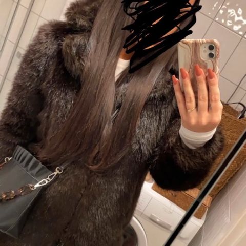 Jakken er ikke brukt. Kostet ny kr 2500. Silke myk kunst «pels». Flott over selskaps kjole eller til jeans, mange muligheter. Med tynt lær belte også fint.