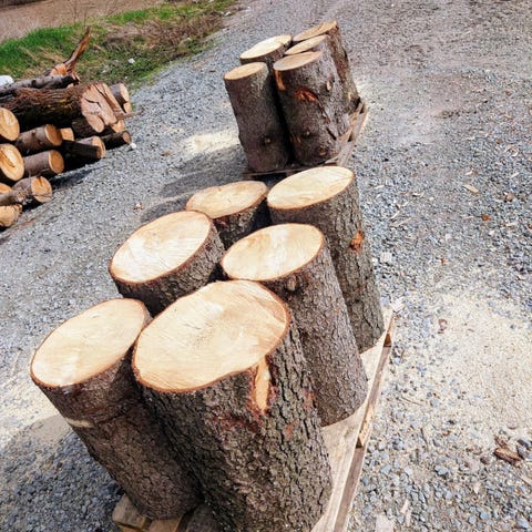 Gutta selger hoggestabber av eik. 250 pr stk.