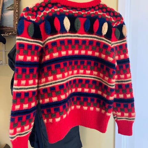 Ca. str.36/38. Offwhite hovedfarge, med mønster i brunt, rosa og beige. Pent brukt, ingen flekker. Kan sendes som sporbar og forsikret pakke for 50kr. ekstra.