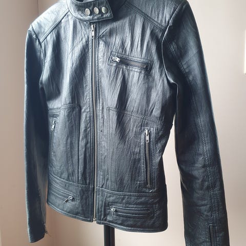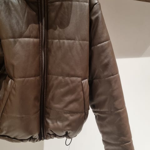 «Skinnjakke» i syntetisk skinn som kan vaskes på 30 grader. Fra kolleksjonen til Tatjana Catic med Bikbok. Ubrukt. Str L. Nypris 899,- selges for 400,-