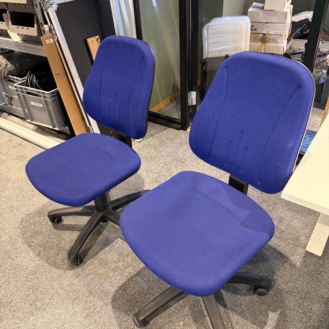 3 stk 7pene stoler med blått stofftrekk til salgs for kr. 150, - pr. stk. eller samlet for kr.400- for alle tre.