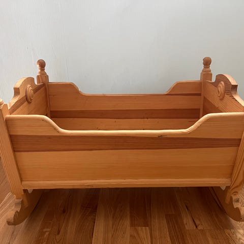 Håndlaget vugge. Passer til dukke og nyfødt.