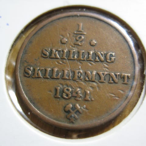 1/2 skilling stjerne 1841 Norge kv 1+/1 selges