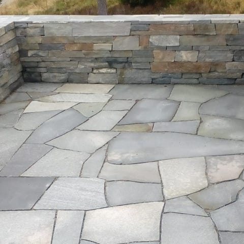 En stilig betongmur som minner om uttrykket til granitten. Muren er knekt og tromlet på en side, slett og tromlet på den andre siden. Murblokkene har låseplugger, noe som gjør det mulig å bygge fallende og loddrette støttemurer.