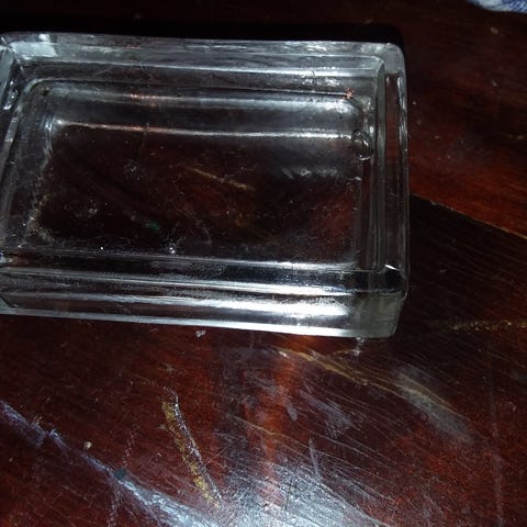 VINTAGE/GAMMELT LITE GLASS SKRIN/FAT MED SØLVFAFGET LOKK