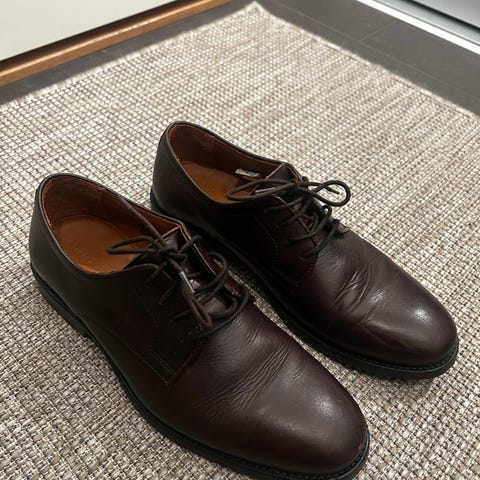 Skoene er laget av kalveskinn og har en diamante sole. Bredden (fit) på skoene er G, som hos Church’s betyr litt mer bredde enn normalt. Generelt er skoene ganske smale, så hvis du har «normal» bredde på føttene dine og ikke veldig smale føtter så passer G-fit perfekt. Størrelsen er UK 11, hadde kalt den en vanlig EUR 45.