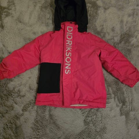 Stilige rosa boble skjørt fra Didriksons. Mykt og deilig å ha på. Glidelås i siden. Refleks punkt foran og bak. Str. 100. Tilnærmet ubrukt.