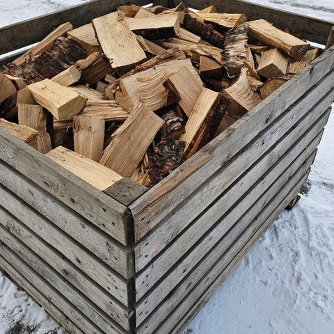 Prima innelagret tørr bjørkeved i 1500liters sekker