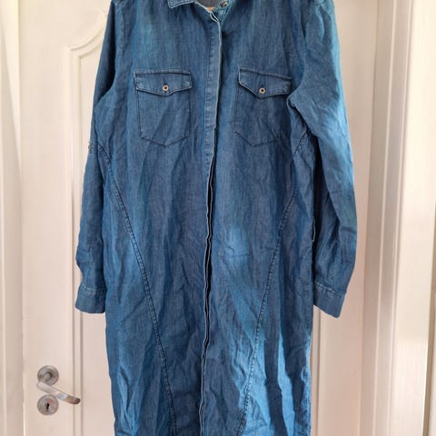 Superfin denimkjole med stropper og knapper foran. Kjolen er som ny, og er størrelse 40. Materiale: 79% polyester, 20% bomull, 1% elastan. Jeg sender stort sett alltid første virkedag etter mottatt penger for frakt :)