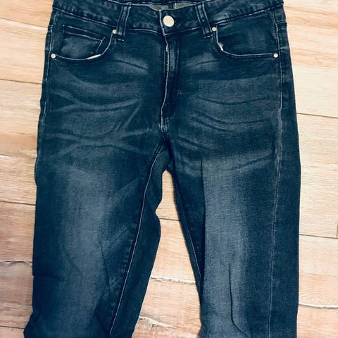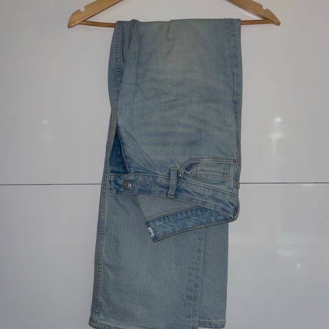 Superfin lys blå skinny jeans med høyt liv. Buksen er kun brukt en gang, og er størrelse M. Materiale: 83% bomull, 15% resirkulerbar polyester, 2% elastan. Jeg sender stort sett alltid første virkedag etter mottatt penger for frakt :)