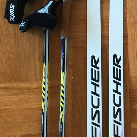 207, Fischer short cut, xc sporty wax, nis plate, rottefella touring auto step in, svarte og hvite,