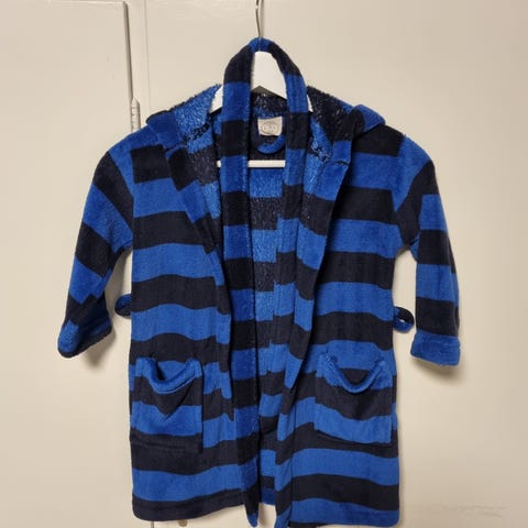 Pen Morgenkåpe til gutt i ca 10-11 år. Ser det er et lite hull ved armhulen. Men ellers er den pent brukt.