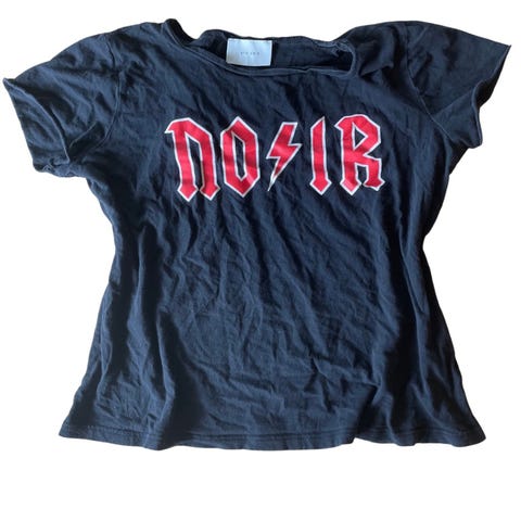 Svart og rød sweet temptation cut out t-shirt (armene), kjøpt second hand på Sicilia, litt gjennomsiktig, størrelse ca Medium.