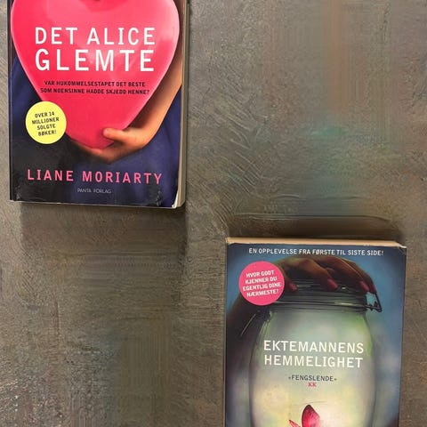 Selger følgende bøker av Liane Moriarty for kr 40 pr stk, eller 125 for alle 4: