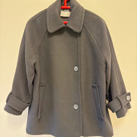 Høy kvalitet. Veldig pen og svært anvendlig sort kåpe i boucle fra InWear med sort SkinnBelte. Lukket knepping. Str. 34. Passer Str. 36. Lett innsvinget. Shell: 31% ull, 25% polyester, 25% acryl, 19% bomull. Lining: 60% acetat, 40% viscose. Røyk- og dyrefritt. Høy nypris. Som ny. Selger kr.1.699,-. Pris er satt.